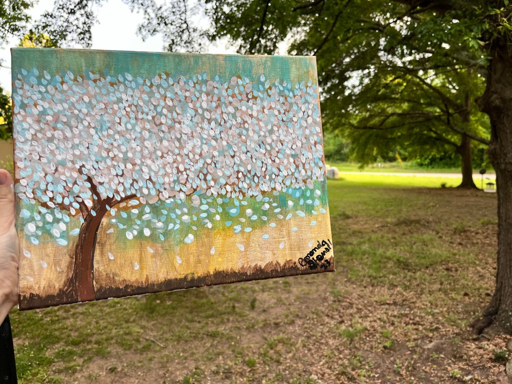 The long weekend was a perfect time to unwind and relax with my hubby at home. We took a break from our usual routines to indulge in some soothing activities, like painting and watching Memorial Day movies. I’ve always found solace in the gentle brushstrokes of painting, and this time was no different. Inspired by the beauty of nature, I painted a beautiful cherry tree with delicate blossoms, which now adds a touch of serenity to my bathroom.