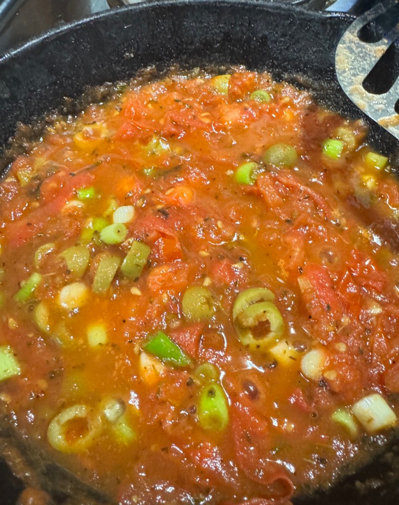- Add the olives (sliced), basil, oregano, Italian seasoning, and cayenne pepper powder.